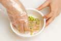 - 2. 다진 채소와 닭가슴살, 참기름, 저염간장을 섞어 만두소를 만든다.